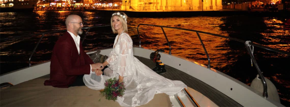 Bei der Bosporustour mit unseren luxuriosen Yachten machen wir den Tag, am neue Ehepaare am glücklichsten sind, unvergessbar, mit unserer außenseitlichen Fotografierendienst. Was sagen Sie?